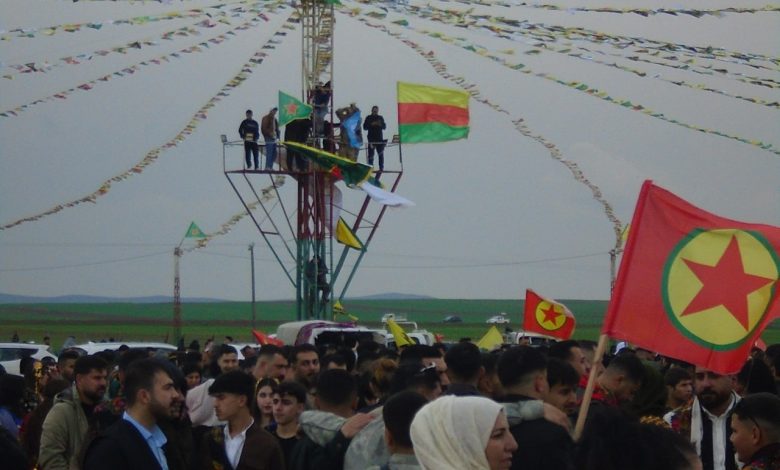 على الرغم من الطقس البارد، توافد مئات المواطنين من ديريك وجرحى الحرب إلى ساحة نوروز ، التي تزينت بالأعلام والصور.