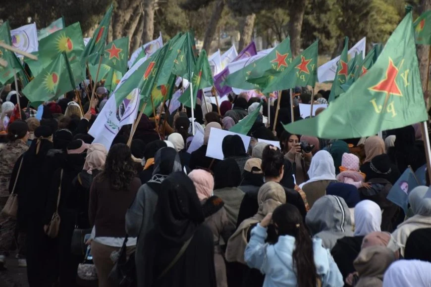 Jinan bi dirûşm û tilîliyên herî bilind, dengê Rêbertî pêşwazî dikirin. Bi rastî jî mirov di mijara pênasekirina wan kêliyan de zehmetiyan dikişîne. Tililî, dirûşmên jinan û dengê Rêber Apo ewqasî li hev hatibûn ku mîna keziyeke herî bedew bi hev ve hatibûn hûnandin.