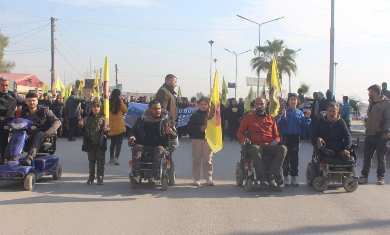 Gaziyên şer, Şêniyên Hesekê, koçberên ji Efrîn û Serêkaniyê bi meşekê azadiya fîzîkî ya Rêber Apo xwestin.