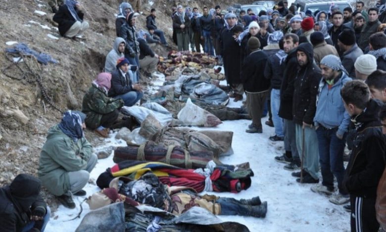 Ev gotinên leşkeran mikurhatina wê komkujiyê bû ku piştî bi çend saetan wê pêk bihata. Gundiyan ev gotin bi bobeleta ku dipan şîrove kiribûn. Ji ber beriya niha jî car caran bazirganiya ser sînor hatibû astengkirin. Lê wê vê carê wiha nebûya, 34 gundî li gel hespên xwe bi rengekî hovane wê bihatana qetilkirin. Dema gundî gihiştin ser sînor û vegeriyan balafirên şer ên artêşa Tirk gelek caran bombe avêtin. Ji 35 kesan tenê Servet Encû sax filîtî. 34 kesên din tevî hespên xwe bi bombeyên bi giraniya bi tonan hatin qetilkirin.